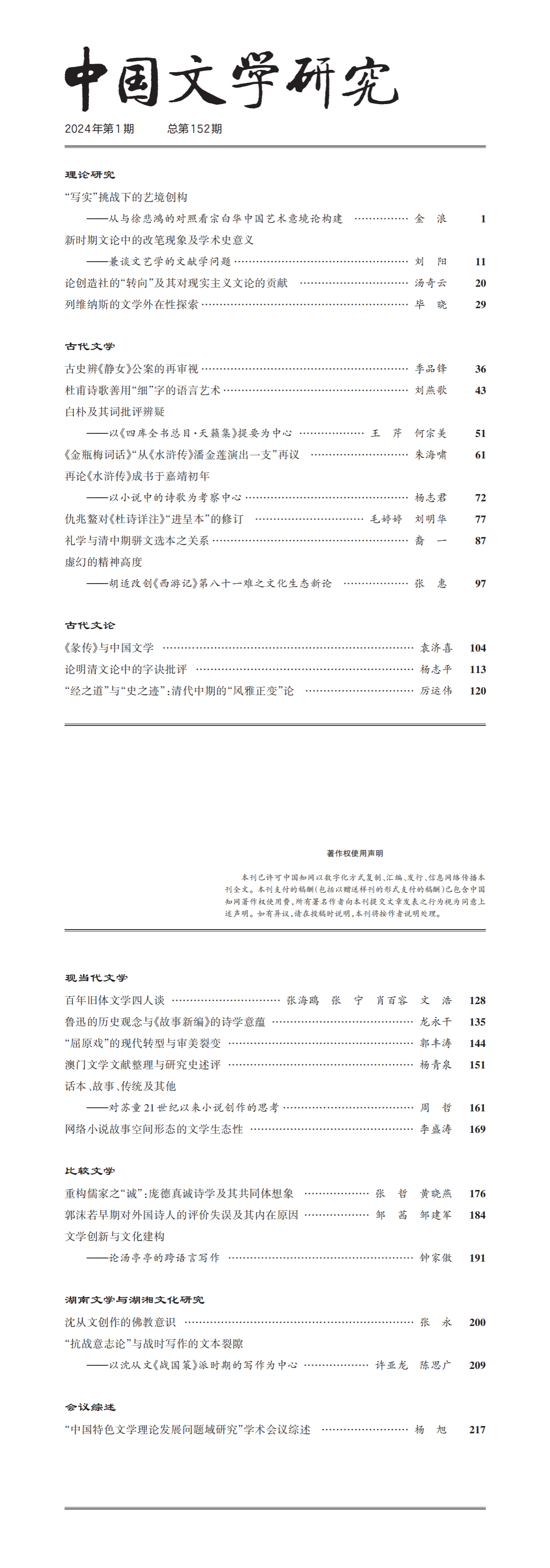 《中国文学研究》2024年第1期总第152期