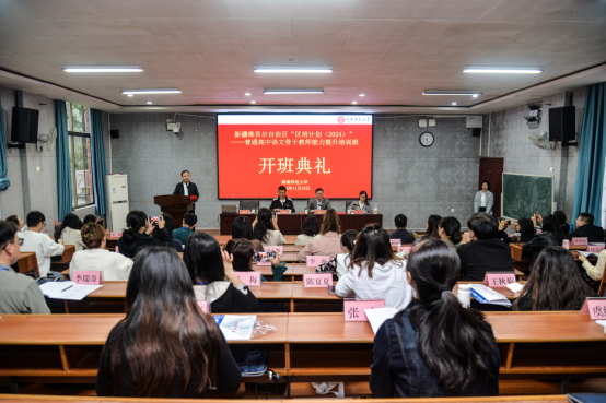 (通讯员王森)时维畅月,序属金秋。11月16日上午,新疆维吾尔自治区“区培计划(2024)”普通高中语文骨干教师能力提升培训班开班典礼在文渊楼217报告厅隆重举行,伟德官网bv1946党委书记熊剑峰、副院长周凯兴、教学班主任周敏副教授以及来自全疆各地州的50名高中语文骨干教师参加开班活动。