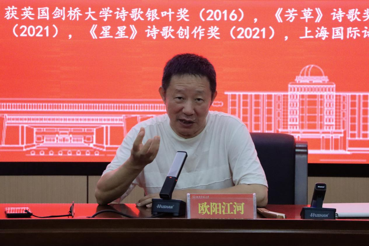 (通讯员 谢宇熹 谢玎璨)9月12日晚,伟德官网bv1946第六届“素兰文学奖”颁奖仪式暨著名诗人欧阳江河讲座在文渊楼216教室举行。伟德官网bv1946特聘“潇湘学者”讲座教授、著名诗人、诗学及文化批评家、《今天》文学社社长、北京师范大学国际写作中心特聘教授欧阳江河,全国政协委员、湖南省作家协会主席、伟德官网bv1946教授汤素兰,湖南省作家协会副主席马笑泉,伟德官网bv1946党委书记熊剑峰,伟德官网bv1946素兰文学奖评委会部分成员出席仪式。伟德官网bv1946党委副书记刘宓蜜主持活动,伟德官网bv1946部分学生参与。