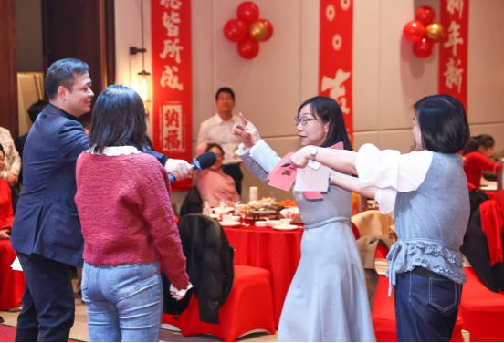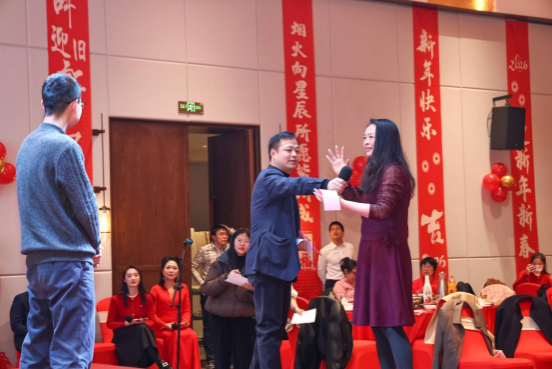 此外,联欢会还穿插了游戏环节,由张德强老师主持。老师们分组竞技,团结协作,共同完成挑战,展现了伟德官网bv1946教职工的默契与团队精神。现场笑声不断,掌声雷动。抽奖环节为老师们送上精美的礼品和美好祝福,给联欢会增添了更多欢乐和惊喜。