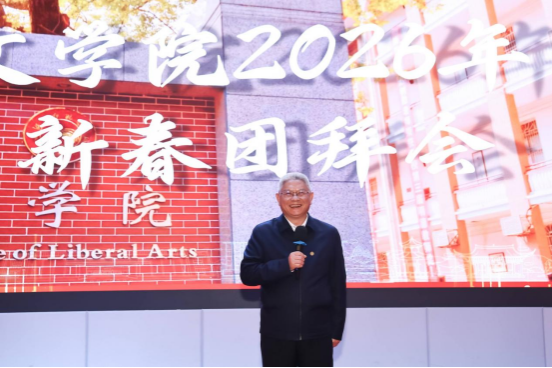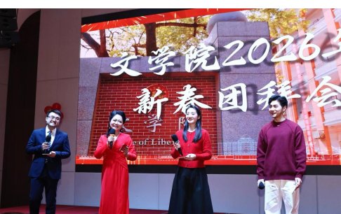 联欢会最后,学院领导班子集体登台,深情朗诵原创诗歌《文脉承星火,新春铸华章》,以铿锵之声表达了传承人文精神、开创学院新篇章的决心与信心,为整场活动画上了圆满句号。
