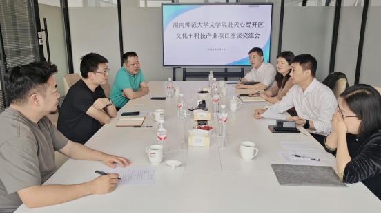 座谈会上,双方围绕“文化+科技”融合路径、产教融合机制、实习实训平台建设、校企合作项目落地等议题进行了深入探讨。天心区数据局(行政审批服务局)党组书记、局长宋立湘,长沙天心文化(广告)产业发展中心副主任封颖,湖南天创文科旅文化产业发展有限公司及蓝风基地相关负责人参与交流发言。大家一致认为,应尽快建立常态化对接机制,推动合作意向转化为具体项目,携手为区域文化产业高质量发展注入新动能。