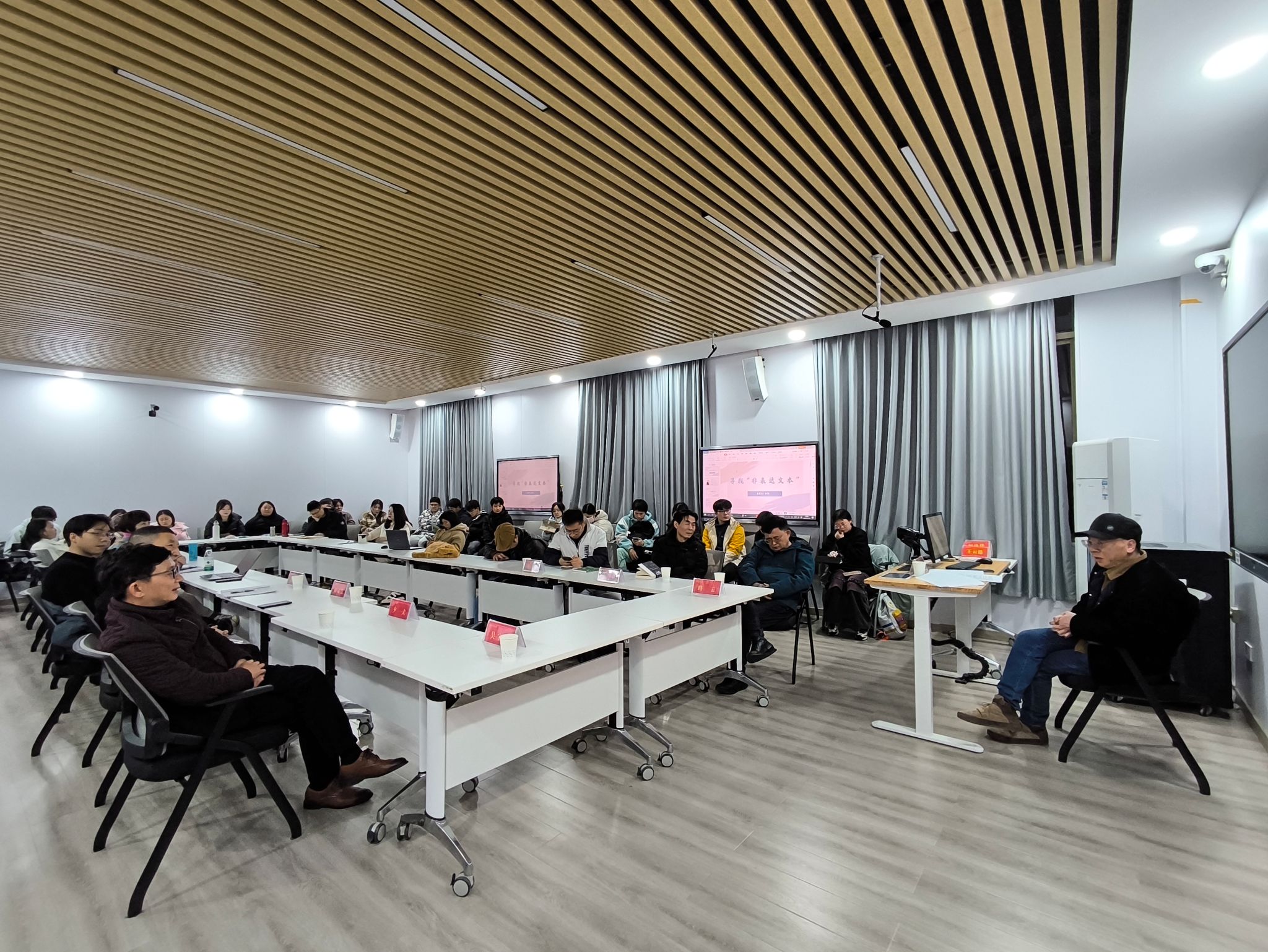 余怒老师的讲座主题是“寻找非表达文本”。他首先阐述了传统表达性文本与当代非表达性文本之间的差异,认为表达性文本偏向于主体或代理人,在表意上往往是单一的和独断的,而非表达文本偏向于读者,表意上具有多义性、模糊性和开放性,赋予读者更大的阐释空间。他认为,诗歌的魅力在于那些未被说出的部分,它邀请读者参与到文本的创造过程,重新赋予文本以意义。其次,他还从诗歌写作与时代文化的关系出发,强调写作是一种去蔽和解放旧的因果关系的过程,主张诗写者应该在每首诗中建立新的、即时的关系,通过语言的创新对文化进行去蔽。